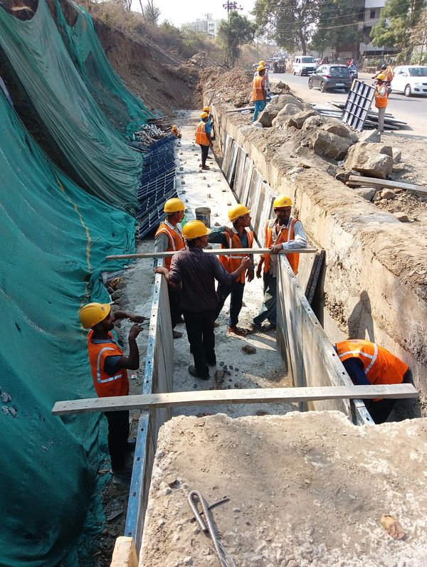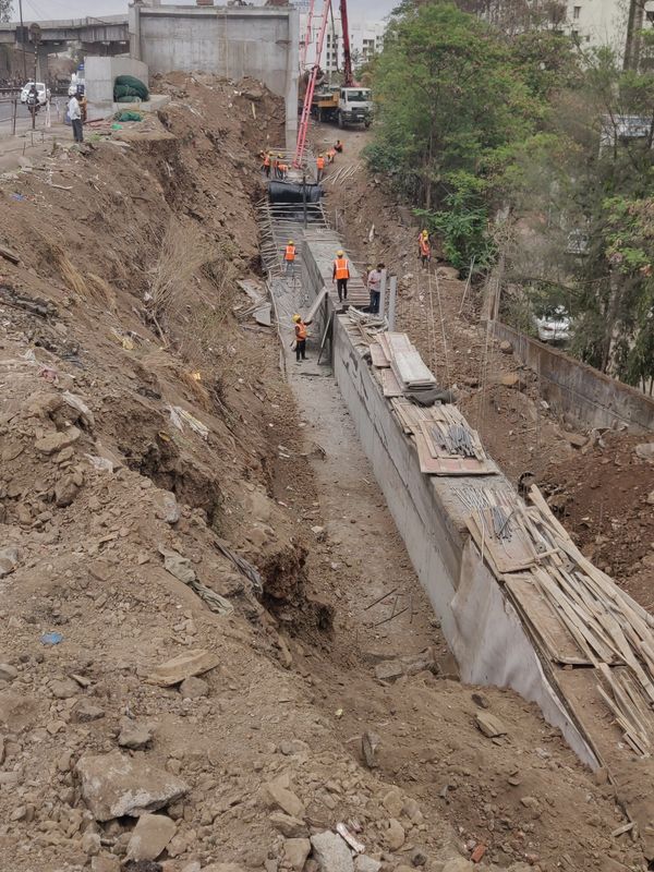 We are currently engaged in an exciting ongoing construction project in collaboration with NCC Limited at the Chandni Chowk Interchange in Pune. One of the unique challenges of this project is the restricted space and heavy traffic in the area. The construction needs to be carried out without the closure of the main carriage way, requiring careful planning and execution. Additionally, the construction of one ramp necessitates a 17-meter high retaining wall, showcasing our expertise in handling complex height requirements. Since its commencement in May 2022, the project has been progressing steadily. Our experienced team at Savi Group is dedicated to delivering high-quality results within the specified timeframe. The wall heights range from 2 meters to 17 meters, catering to the specific needs of the project.